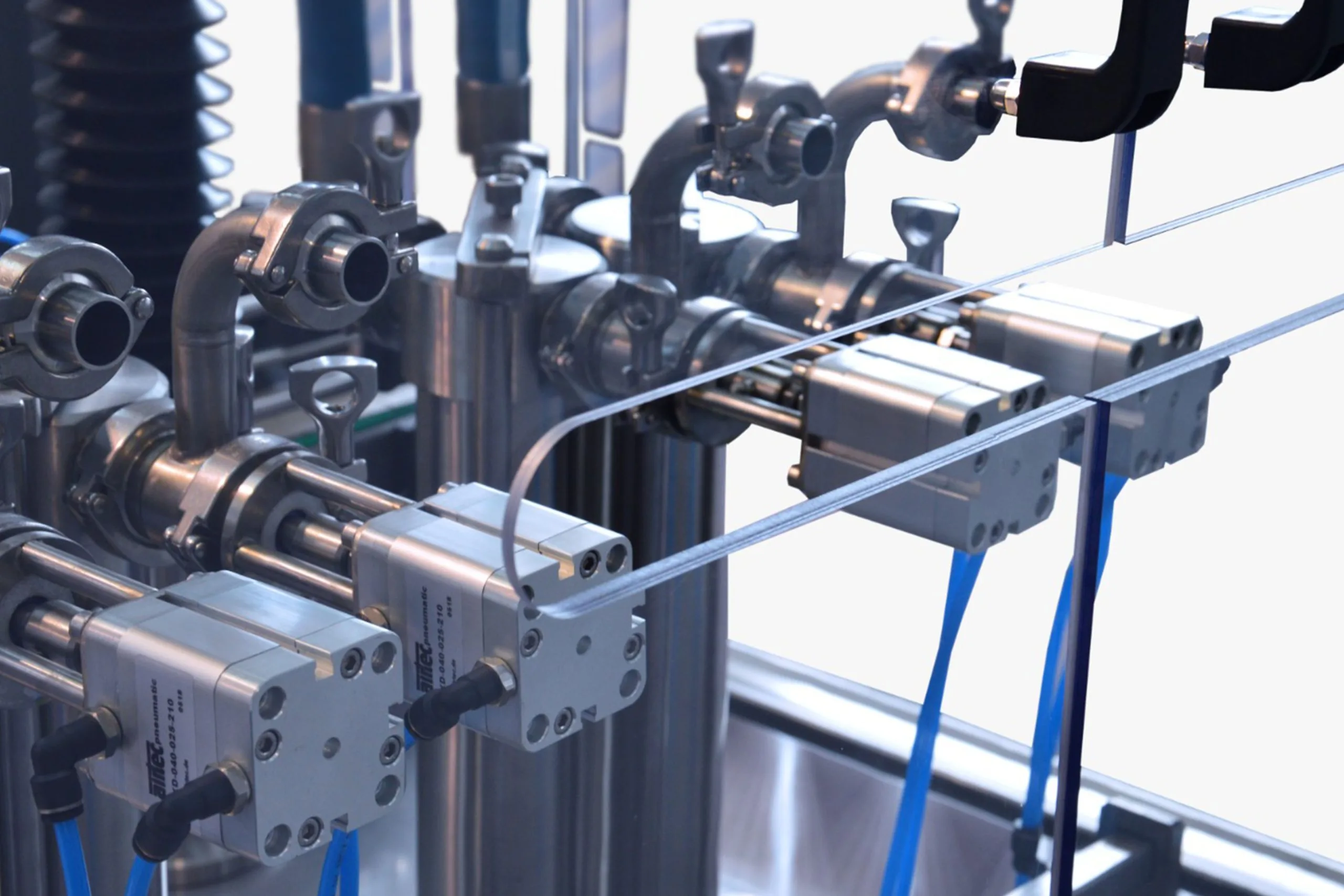 - 4 Filling heads: via a peristaltic pump with a diving mechanism to provide a synchronized mechanical movement and prevent foaming.