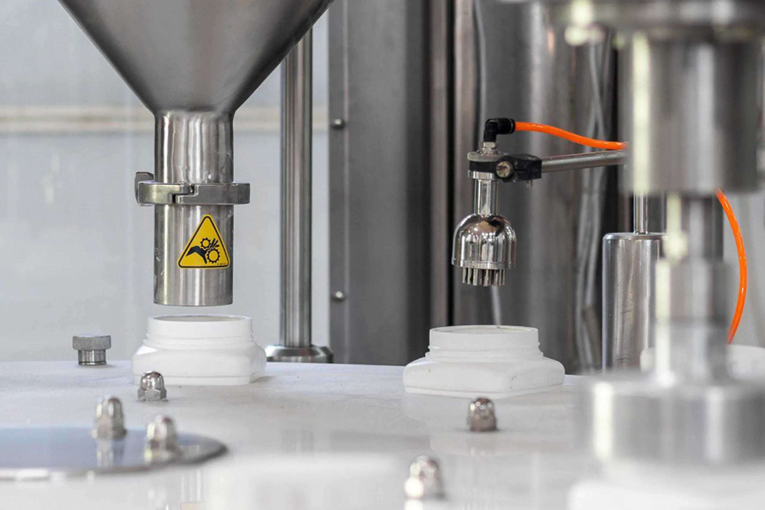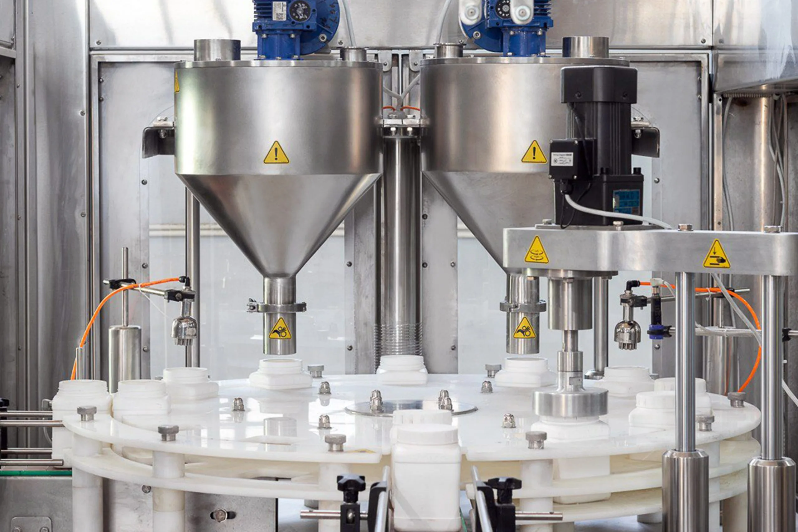 - conical funnels to ensure continuous and regular flow of the product during the filling process, equipped with: