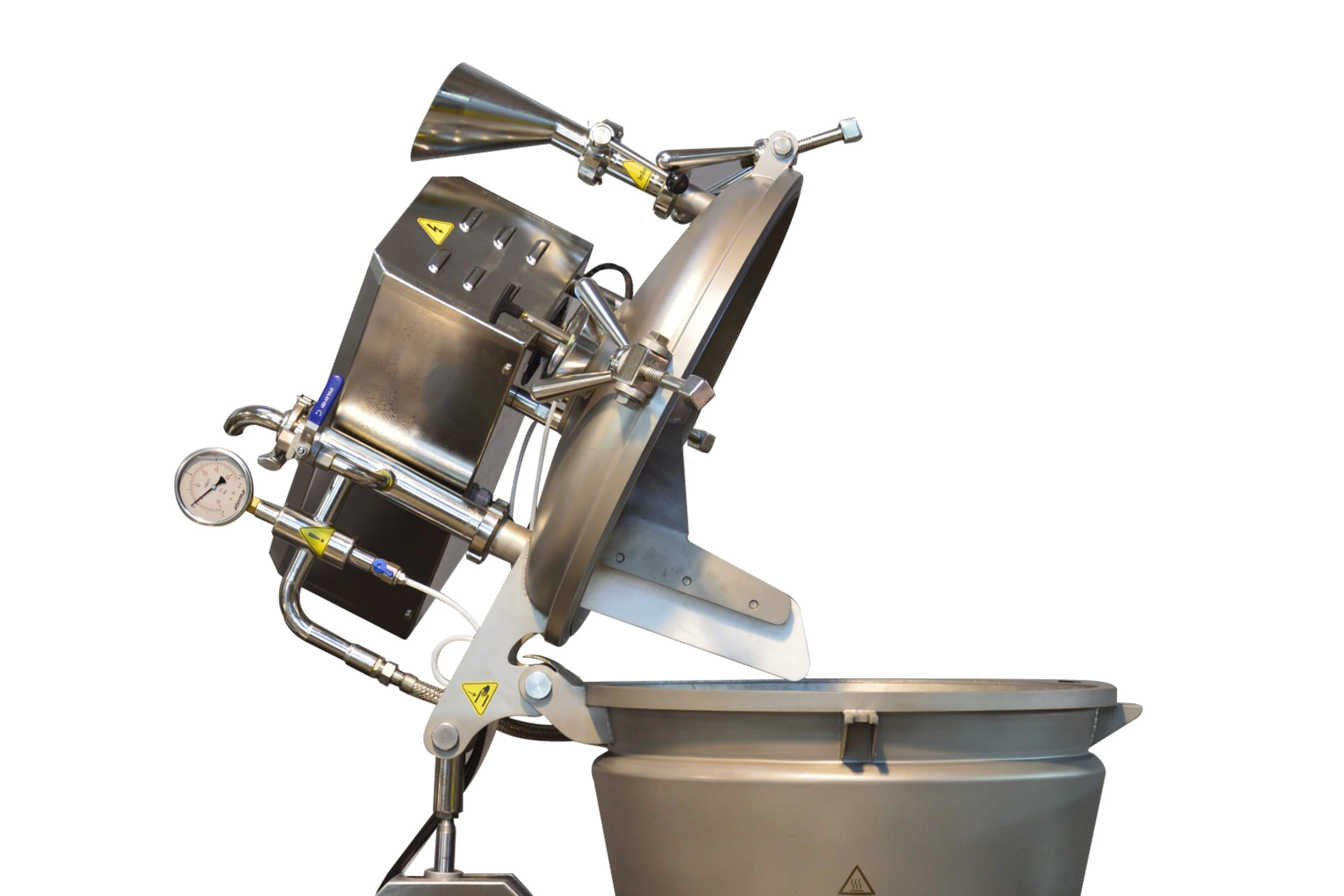 - Double-jacket equipped with pressure gauge & safety valve.