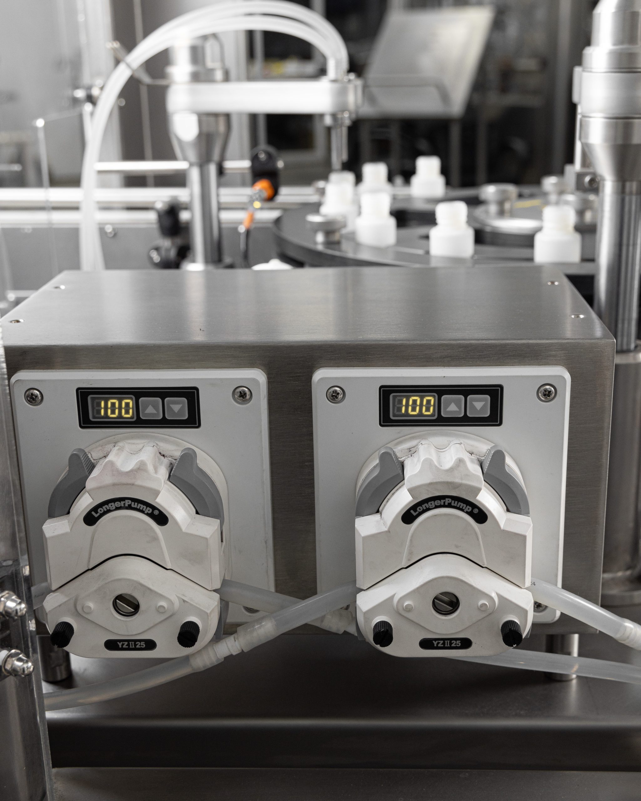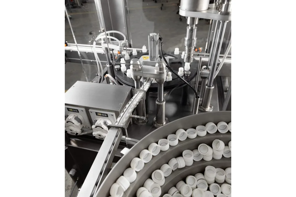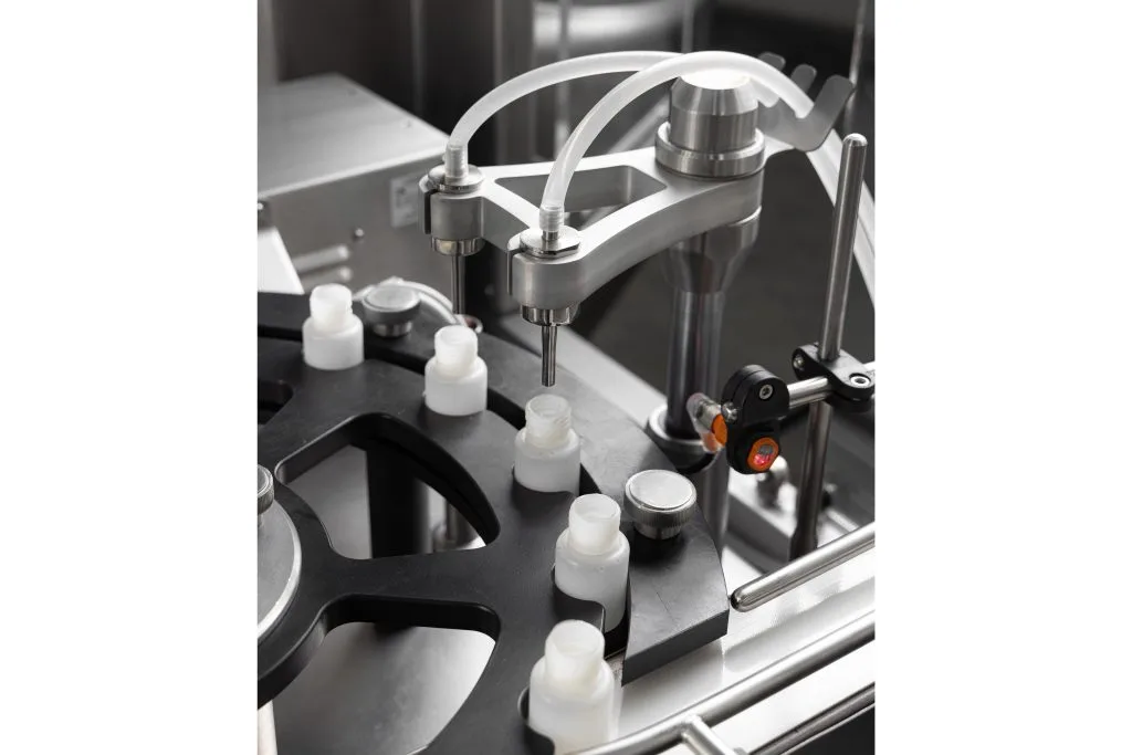 - Filling heads: via a peristaltic pump.