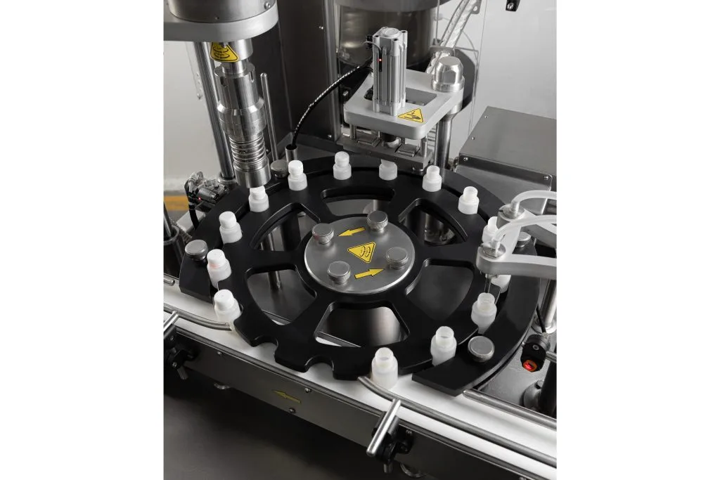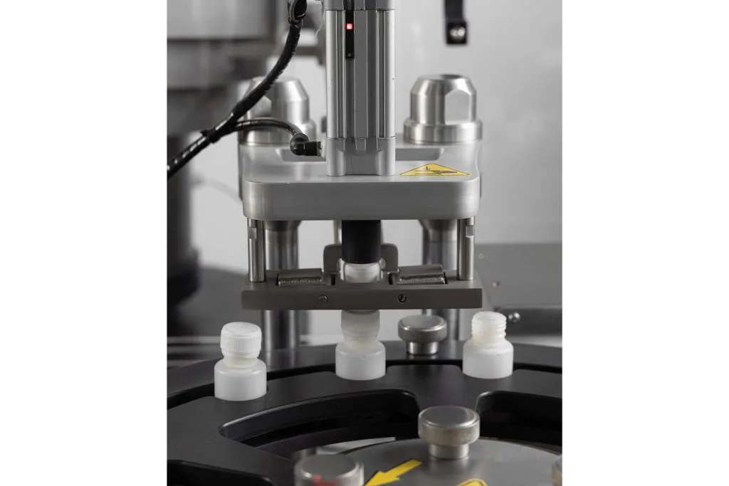 - Closing mechanism: It is a pressing and twisting Calibratable mechanism driven by a system of sensors that is compatible with the workflow of the machine for closing plastic containers.