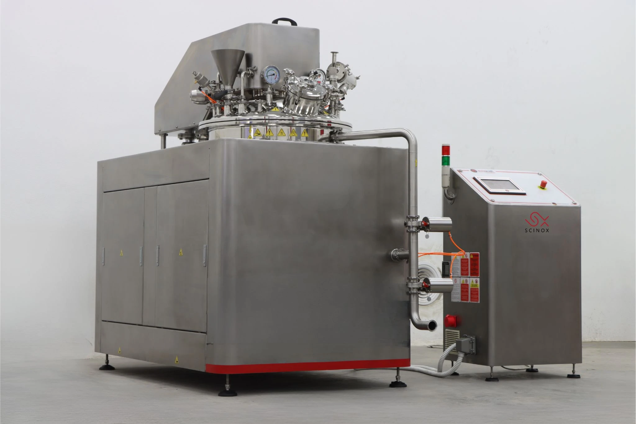 - Mixer’s chamber : Equipped with Safety valve and pressure Gauge for double-jacket.