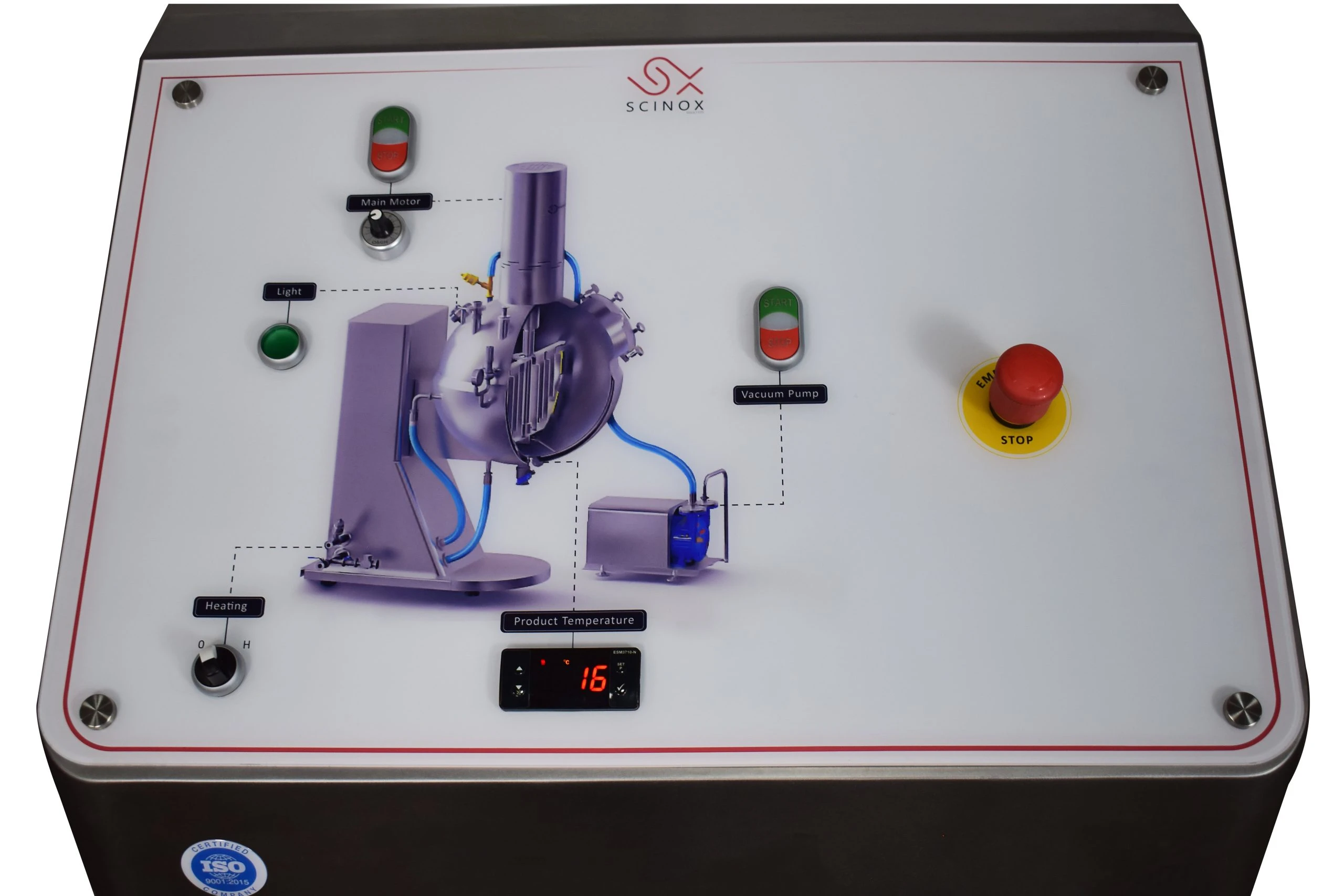 - Product discharge port & manual valve.